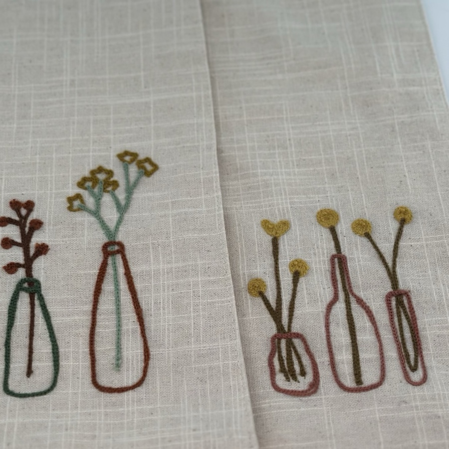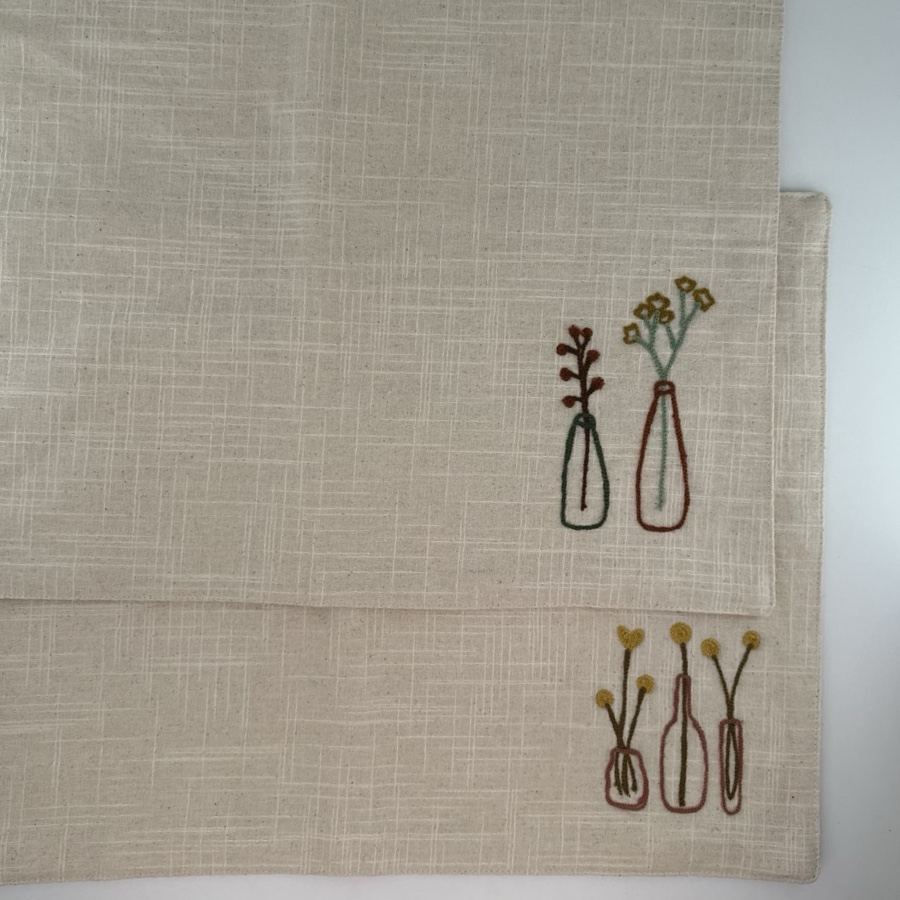 Tygunderlägg i två assorterade brodyr. Tillverkade i 100% bomull. Pris per styck. Tvättas i 30 grader, ingen torktumling