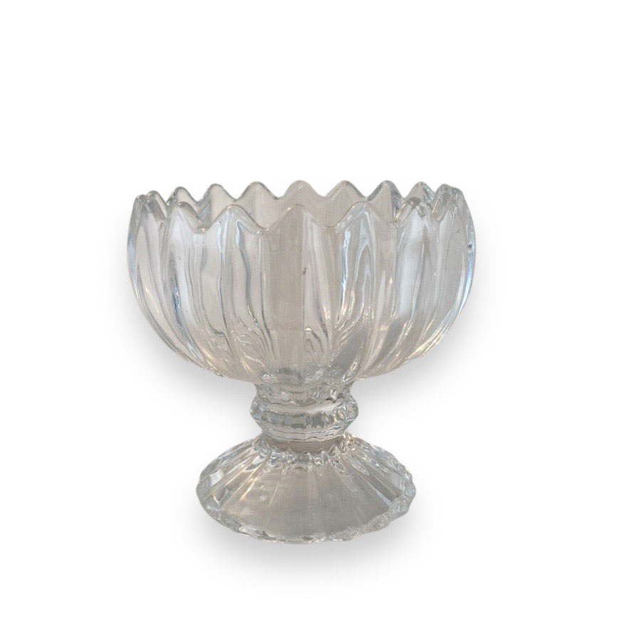 Süße Glasschale auf einem Fuß – perfekt zum Servieren von Süßigkeiten oder Leckereien.