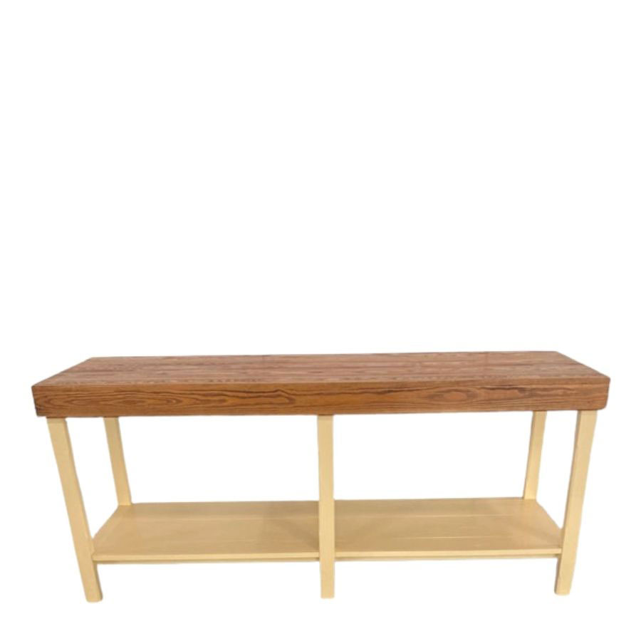 Die Beine sind mit Leinölfarbe gestrichen, und die Platte ist mit einem pigmentierten Lasuröl veredelt.