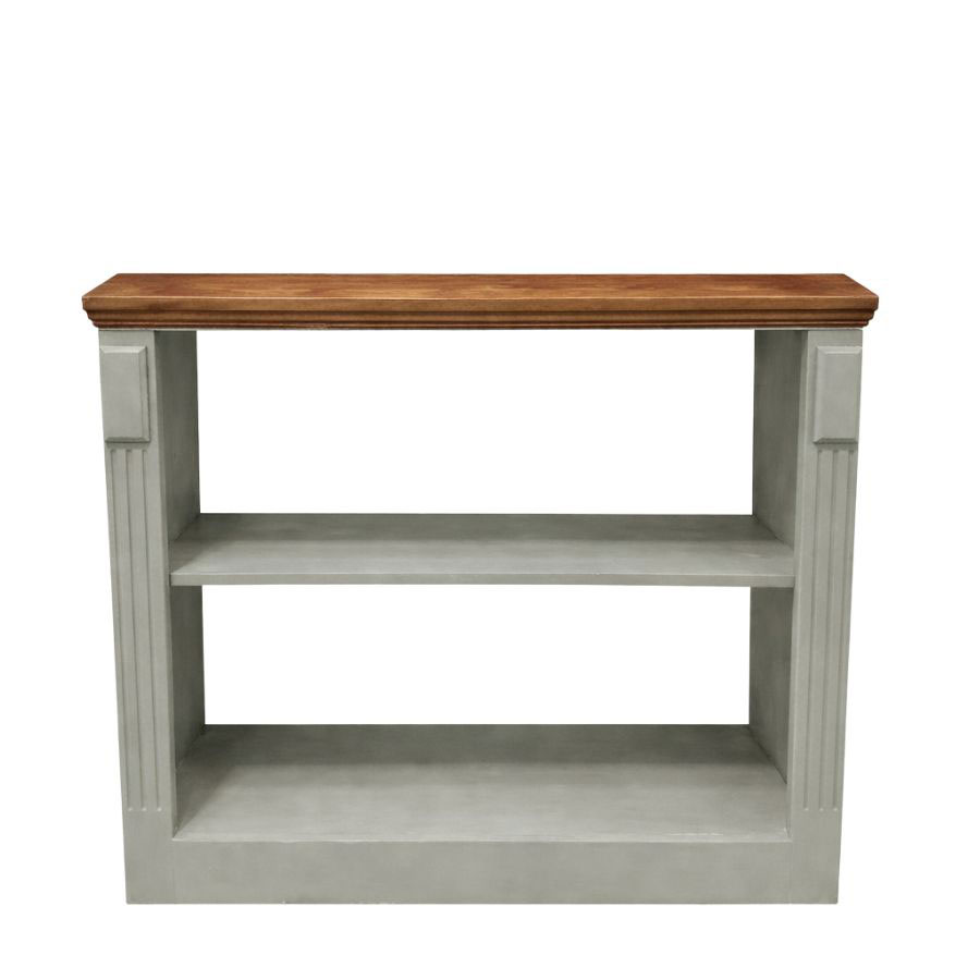 This shelf features a walnut top and a base in Verona grey. The colour shown in the image may differ slightly from the original Verona grey.