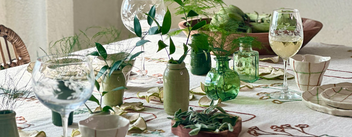 Take a seat and enjoy a moment of harmony. A table setting in light tones, complemented by shades of green – an invitation to unwind, breathe, and connect at a gentler pace.