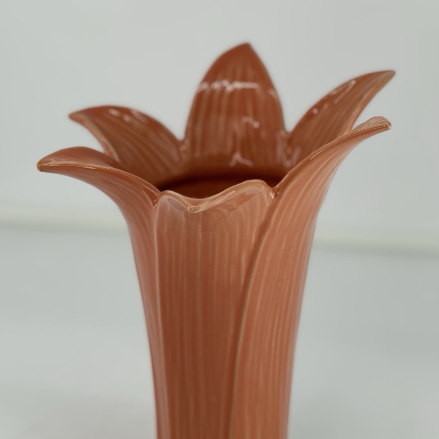 Färgglad vas i en fantastisk form. Vasen är tillverkad med en reaktiv glasyr, detta gör att det kan förekomma färgskiftningar som gör varje produkt unik i sitt uttryck.