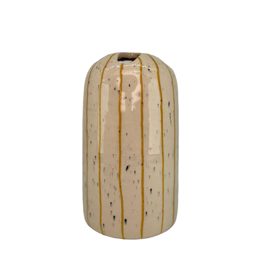 Vas med flera hål för att sätta snittblommor/grenar/gräs/växter i. Vasen är handmålad med smala ränder. Det handmålade gör att varje produkt blir unik.