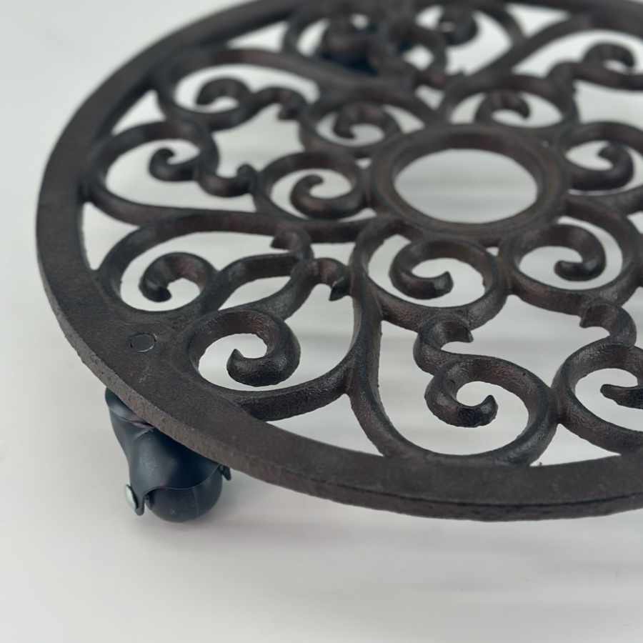 Krukvagn / Krukunderlägg med hjul tillverkat i gjutjärn.