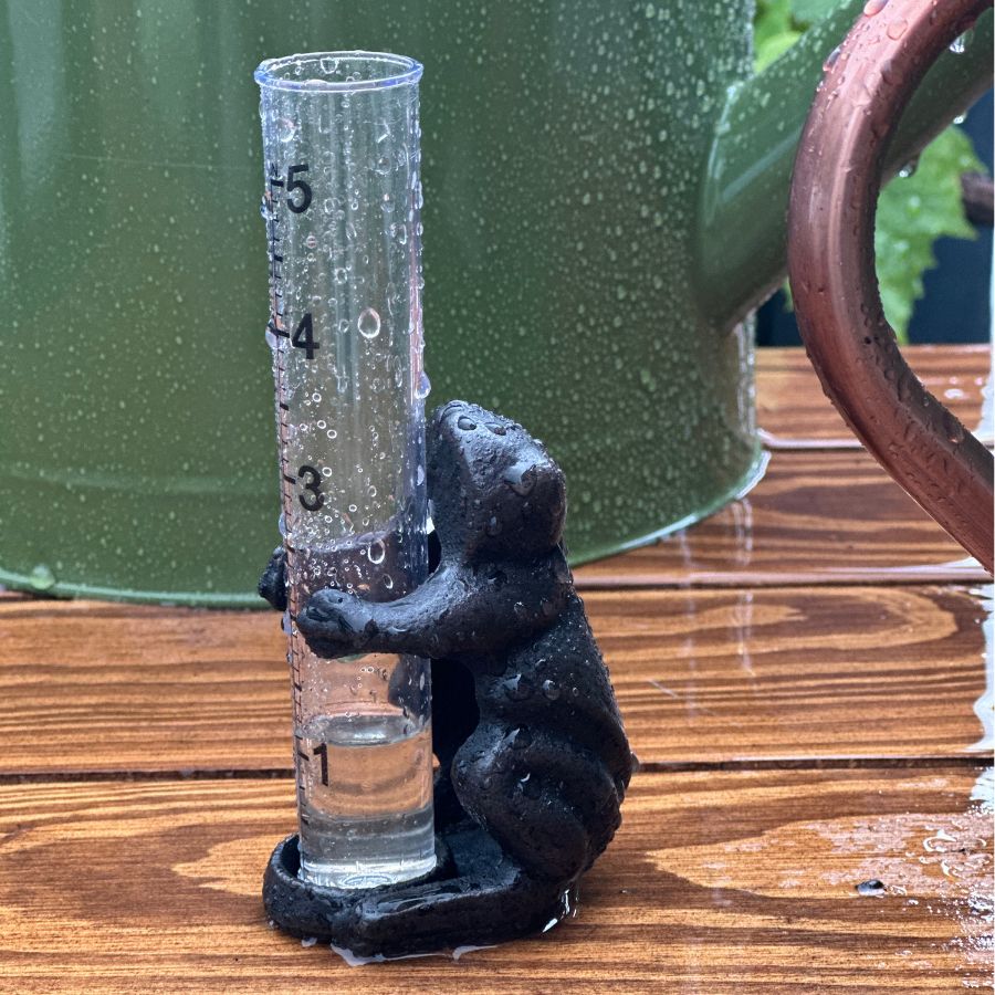 Regnmätare - groda i gjutjärn håller cylindern i plast.