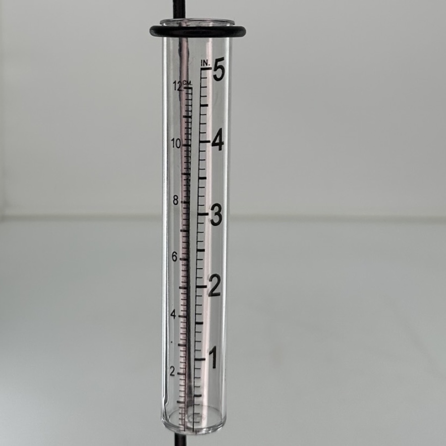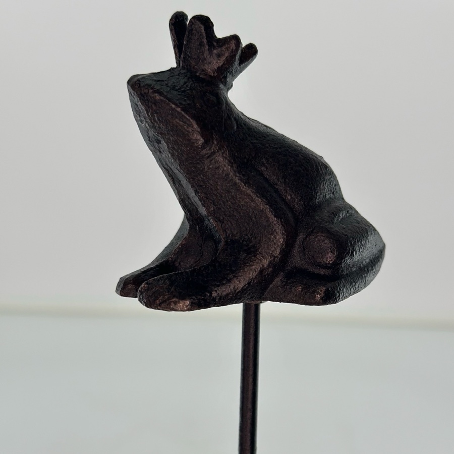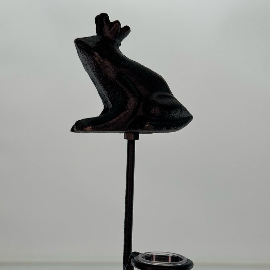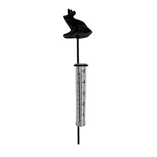 Regnmätare - groda och pinne i gjutjärn, cylindern är tillverkad i plast.
