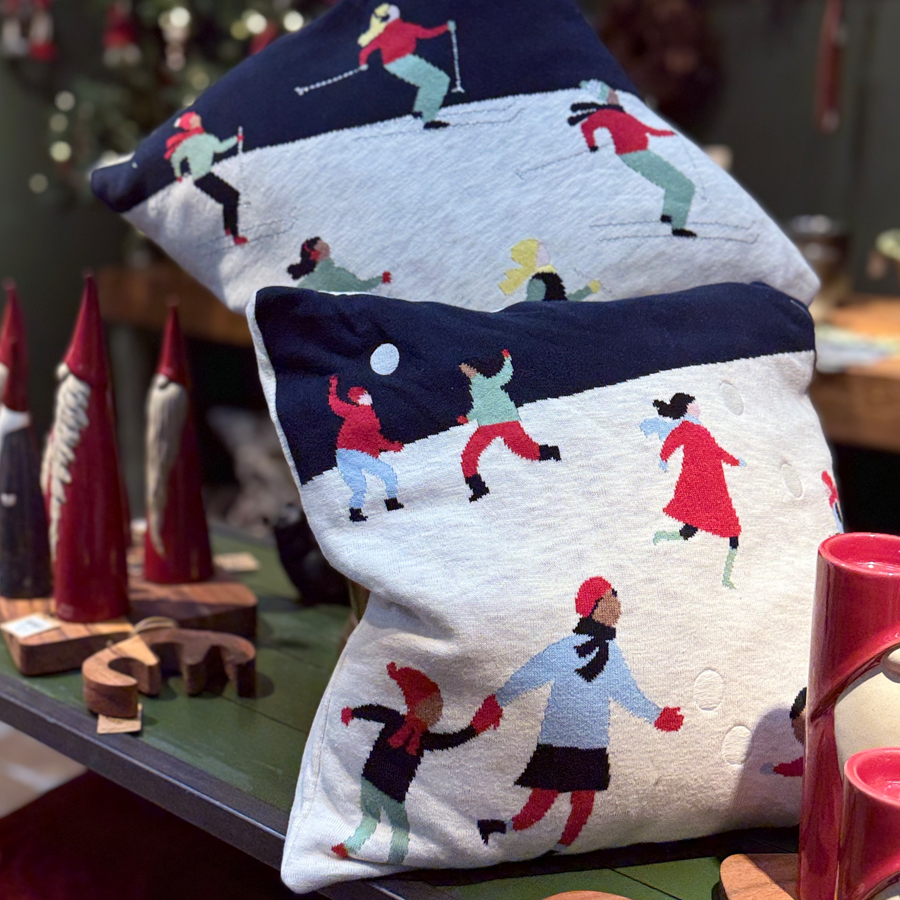 Stickat kuddfodral, delvis broderat. Tvättas i 30°C, skonsamt program, tål inte att torktumlas. Går att stryka med låg värme.