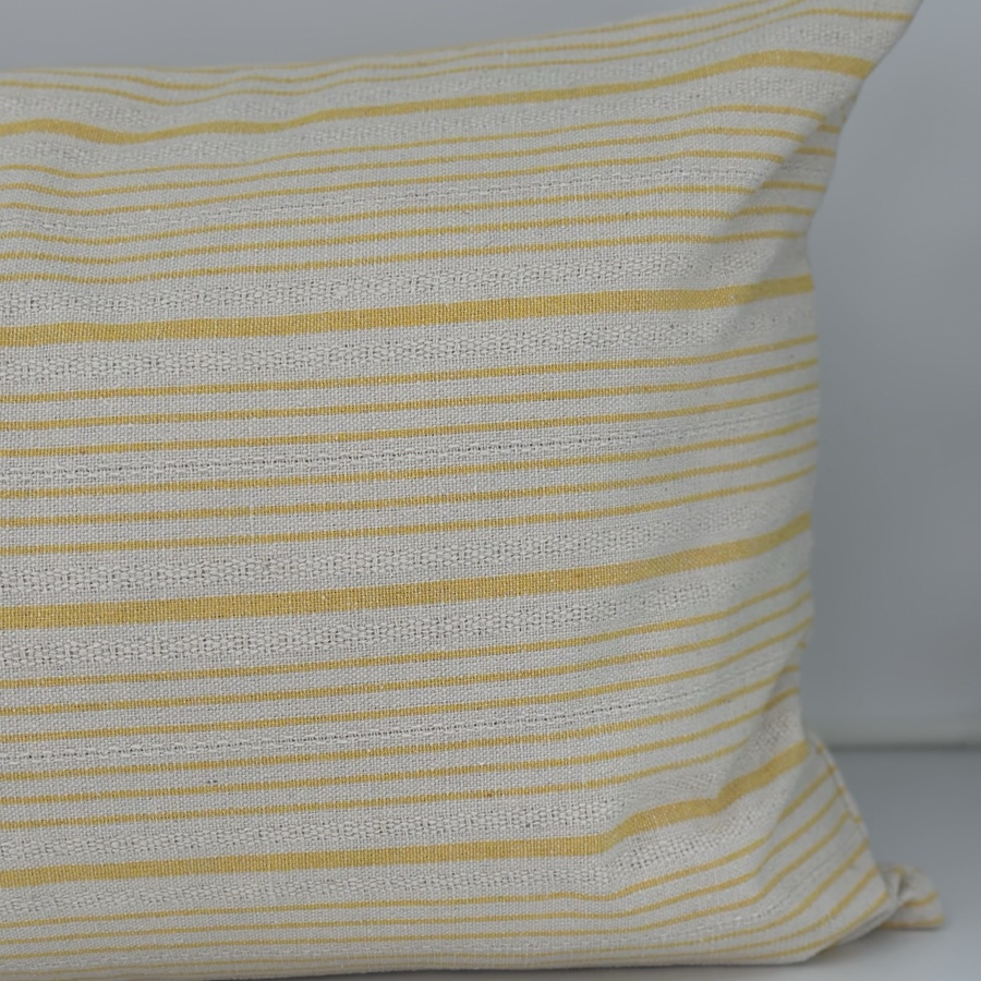 Ett gulrandigt kuddfodral. Tvättas enkelt i maskin vid behov. Tillverkad i en polyesterkvalitet som har en känsla och struktur av linne. Passar bra till innerkuddar i storleken 40x60.