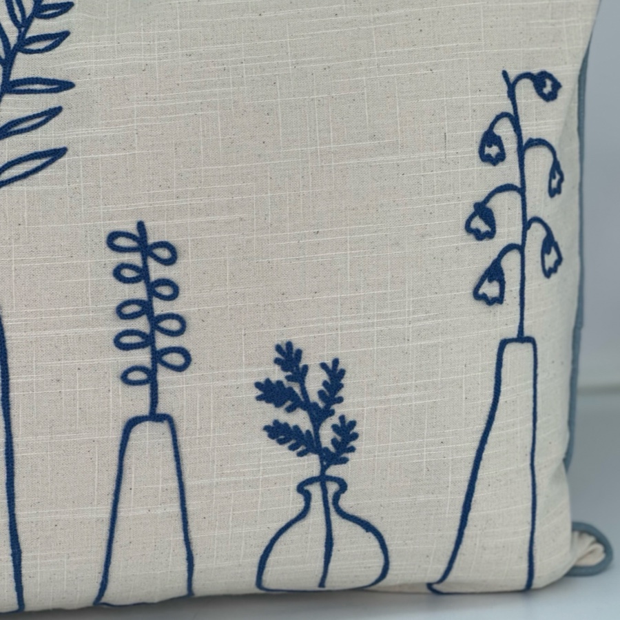 Broderat kuddfodral i 100% bomull. Tvättas i 30 grader, ingen torktumling