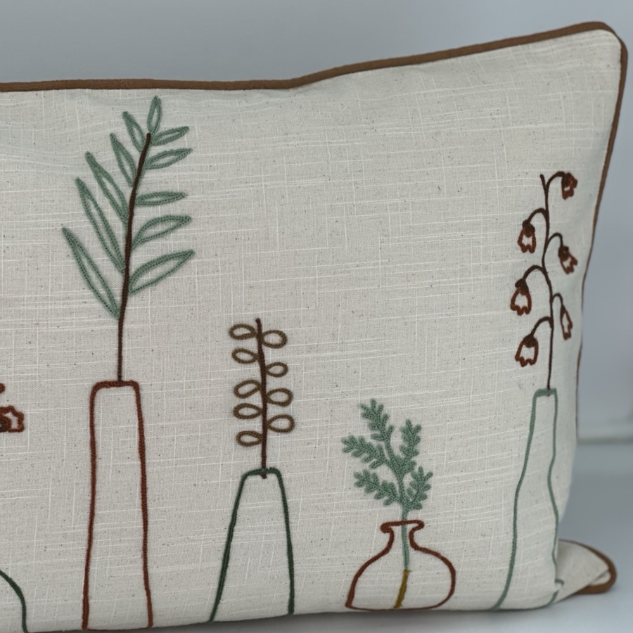 Broderat kuddfodral i 100% bomull. Tvättas i 30 grader, ingen torktumling