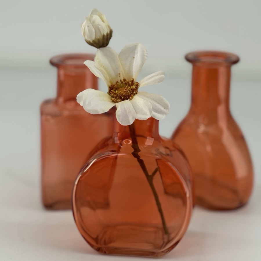 Tre minivaser i glas. Produkten är spraymålad och tål därför inte diskmaskin. Diskas för hand. Ligger assorterade i olika former - pris per styck.