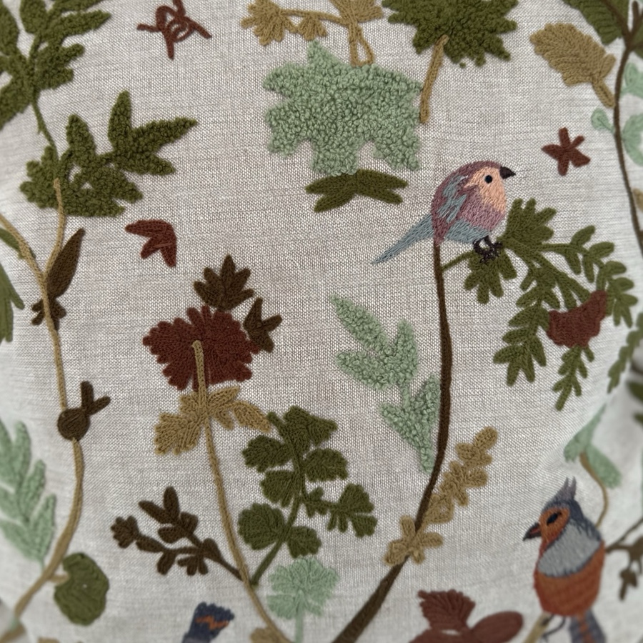 Broderad kudde med vackert naturmotiv i härliga färger mot en naturfärgad botten. En dekorativ detalj som skapar en personlig känsla. Brodyr endast på framsidan. Material: 100% bomull. Tvättråd: Kemtvätt